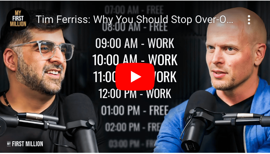 Tim Ferriss reveals his approach to the start of every podcast episode at the 23-minute mark of this video.